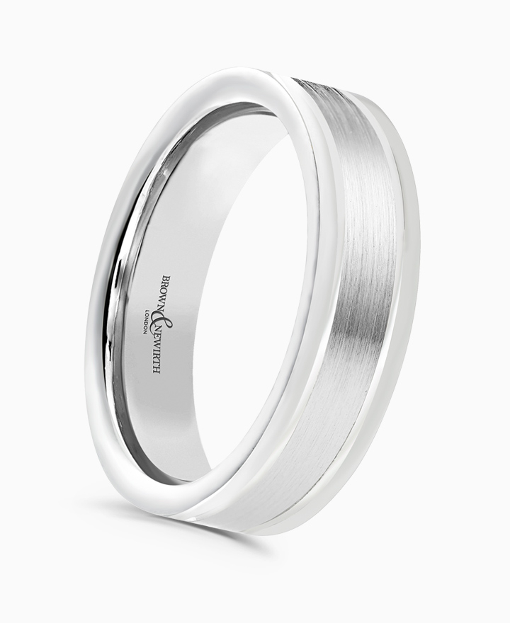 Handcrafted by Brown & Newirth; our flat top profile with brushed centre, v-cut detailing and polished square edges, presented in a heavy gauge. Part of the Icon Collection