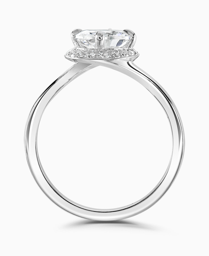 Handcrafted by Brown & Newirth; inspired by nature, diamonds wrap around to frame a 1.00ct oval cut diamond, presented here on a classic court band. Total 1.15ct. Part of the Entwined Collection.