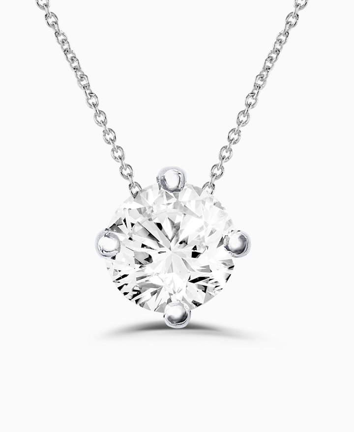 Handcrafted by Brown & Newirth; a timeless classic our four claw solitaire pendant, supplied on a 16'-18' adjustable trace chain. Total 0.15ct / 0.25ct / 0.30ct / 0.40ct / 0.50ct. This is part of our in stock range, order today for quick delivery.