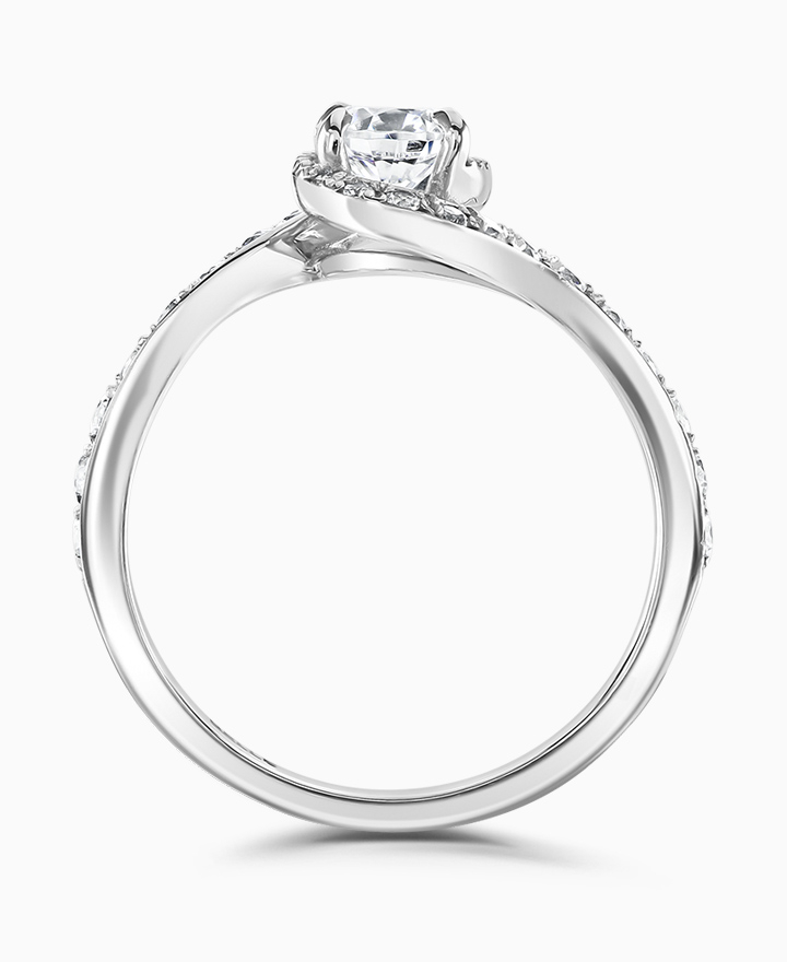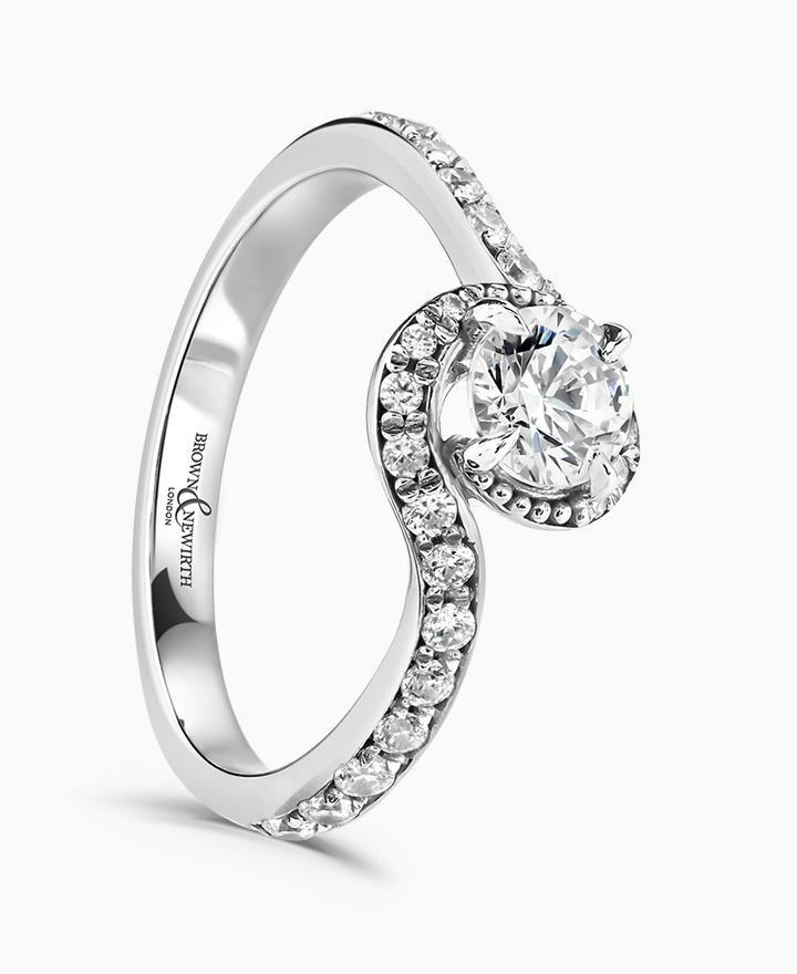 Handcrafted by Brown & Newirth; inspired by nature, diamonds wrap around to frame a round brilliant cut diamond, presented here on a diamond set band. Centre 0.50ct, total 0.82ct. Part of the Entwined Collection.