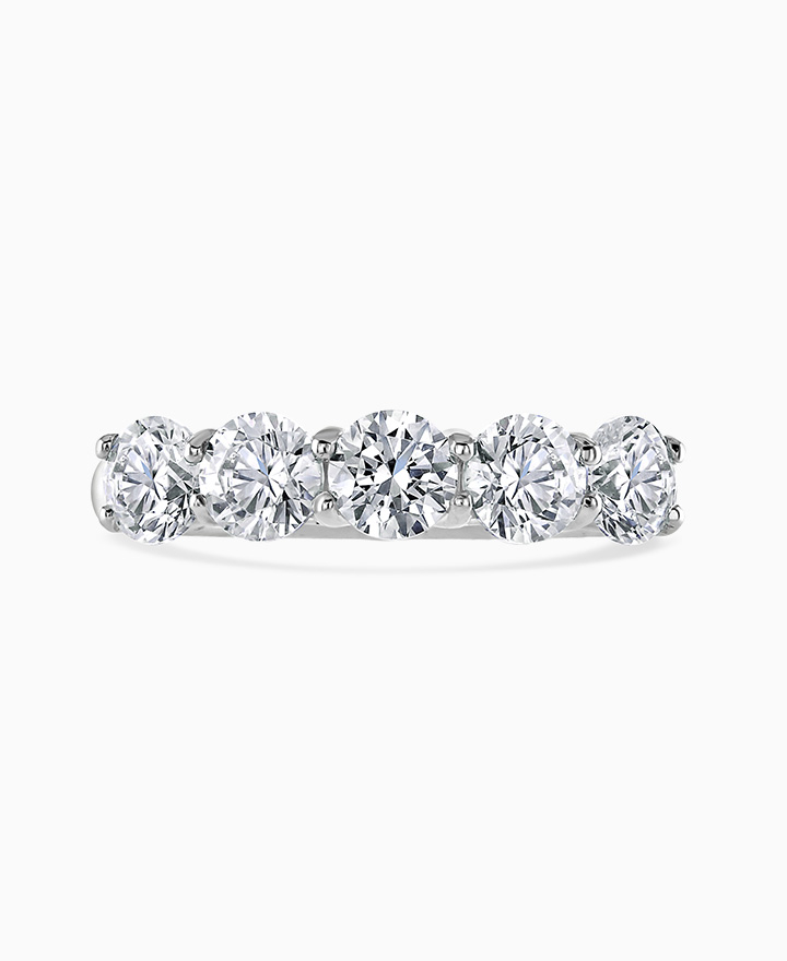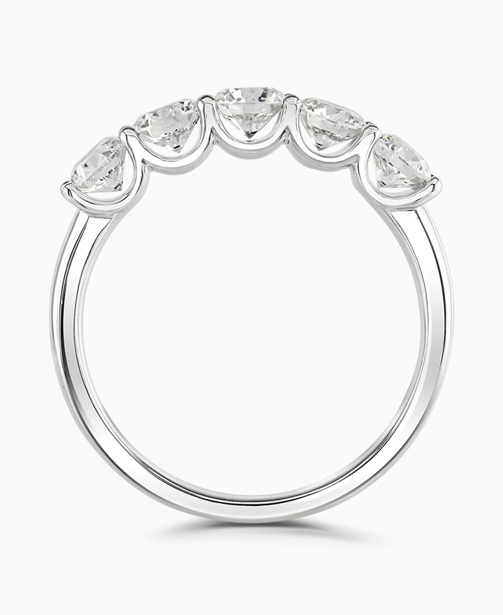 Handcrafted by Brown & Newirth; a cupped claw setting elevates these five round brilliant cut diamonds, presented here on a classic court band. Five 0.30ct, total 1.50ct
