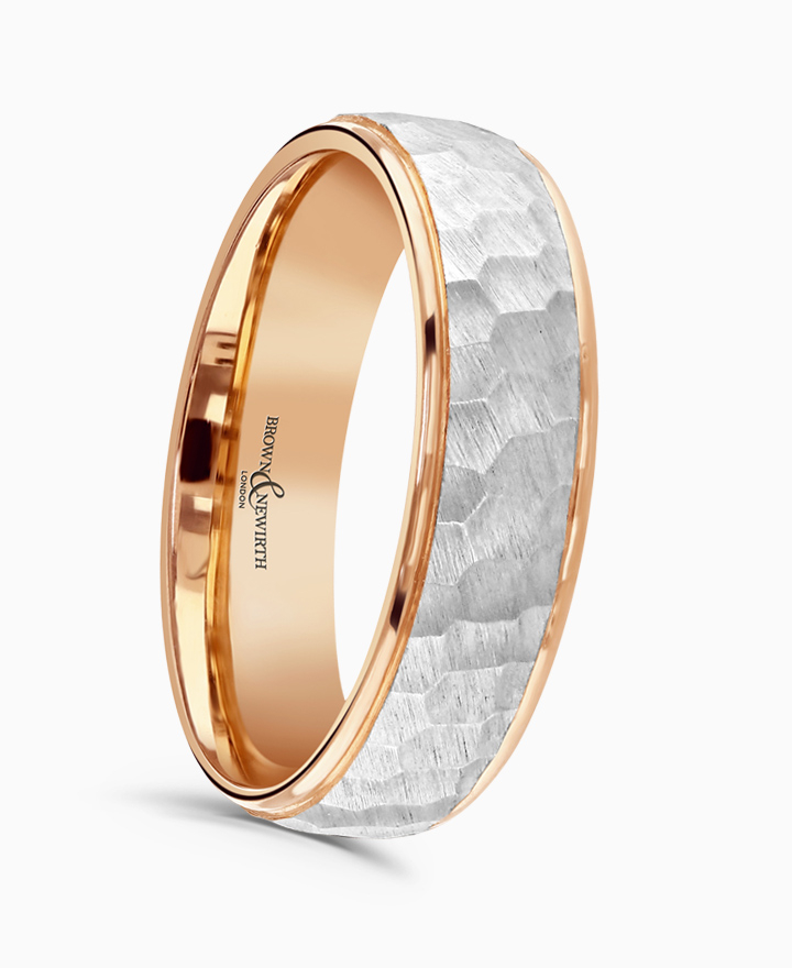 Handcrafted by Brown & Newirth; our flat top profile features brushed hammered effect pattern and dropped rolled edges in contrasting colour, presented in a medium gauge. Part of the Icon Collection.