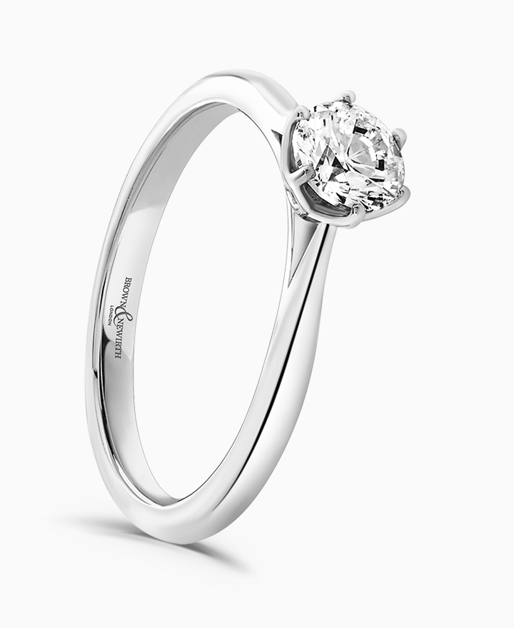 Handcrafted by Brown & Newirth; our signature 'bloom' floral detailing for a round brilliant cut G Vs diamond, presented here on a classic court band. 1.00ct. Part of the Bloom Collection.