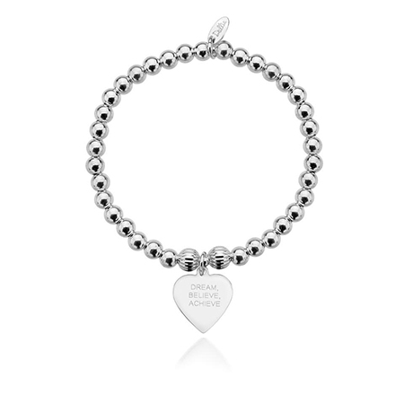 Made with sterling silver beads, the "Dream, Believe, Achieve" bracelet is our ultimate reminder of your goals. Wear it with your lucky outfit and shine all day long!