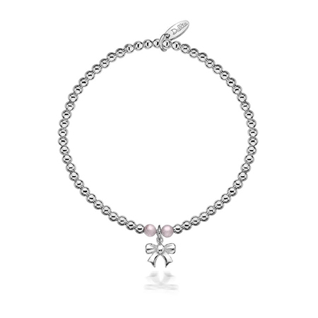 Pretty with a hint of pink, add a subtle pop of pink jade to your Dollie stack with the Taylor silver charm bracelet. Featuring our signature bow charm it's the perfect gift for the sweetest of Dollie girls.