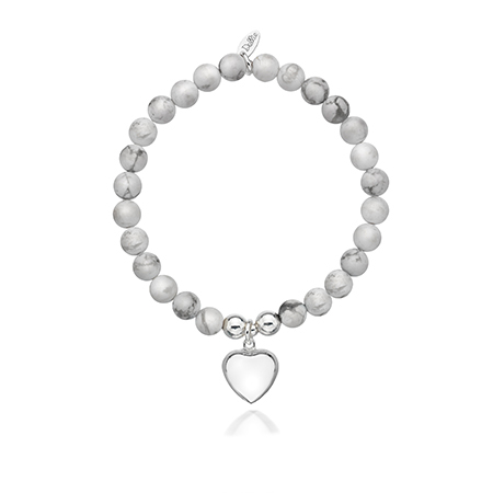 Sterling silver beads and marble effect jasper beads on a stretchy silicone thread.