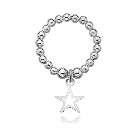 When you wish upon a star, your jewellery wishes come true... That’s why we love our Baby Open Star Charm ring. Shown here in Medium size, this is the ultimate stacking ring. Made with silver beads and a silver star charm, it’s cute when worn alone, but awesome in a #DollieStack.