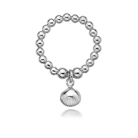 Sterling silver beads and charm on a stretchy silicone thread.