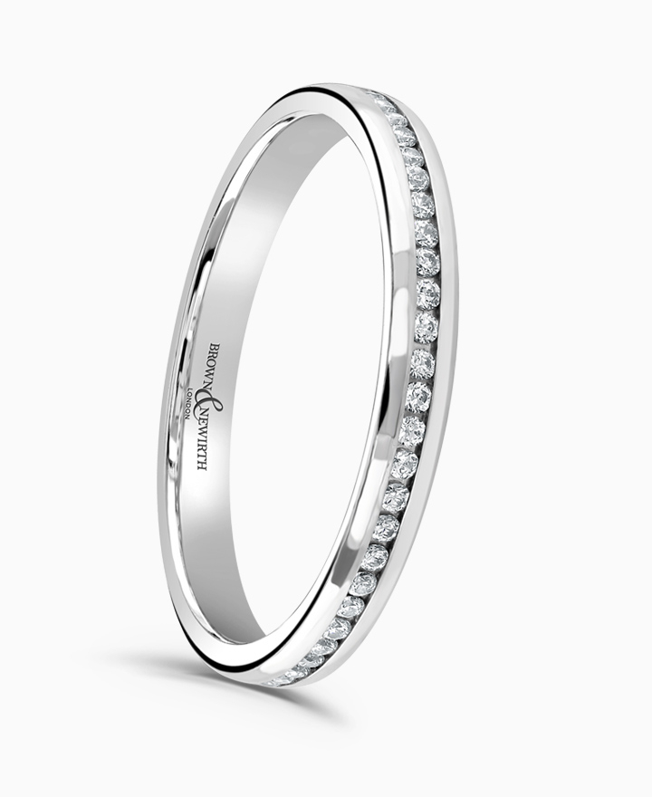 Handcrafted by Brown & Newirth; round brilliant cut diamonds adorn the full hoop of this classic court band. Part of the Icon Collection. Total carat weight 0.27ct