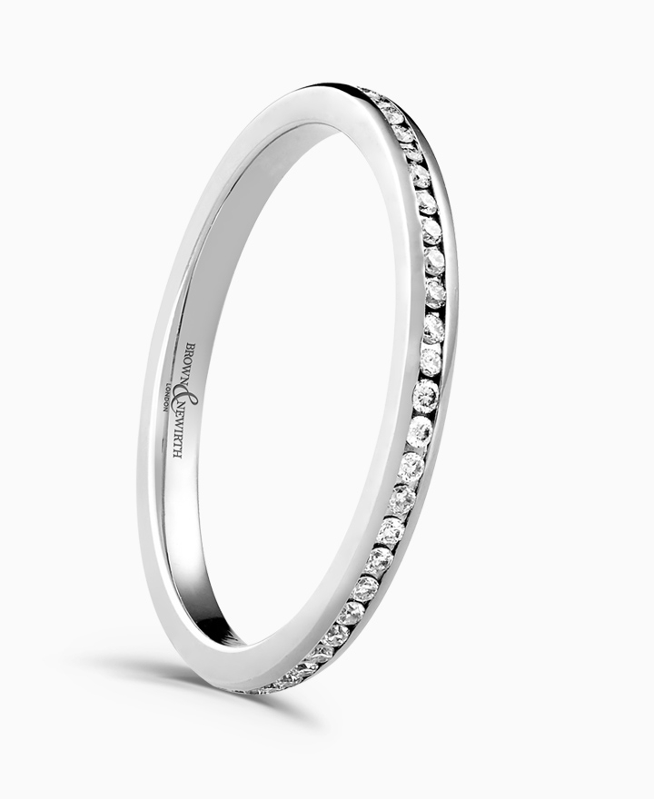 Handcrafted by Brown & Newirth; round brilliant cut diamonds adorn the full hoop of this classic court band. Part of the Icon Collection. Total carat weight 0.27ct