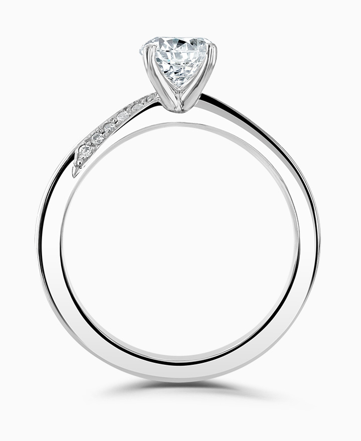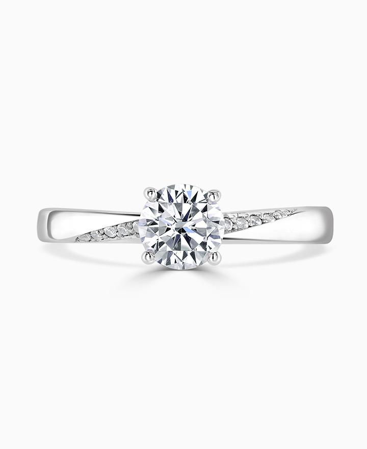 Handcrafted by Brown & Newirth; a delicate four claw setting perfectly elevates the round brilliant cut diamond, presented here on a band with twisted diamond set shoulder detail. Centre 0.75ct, total 0.81ct.