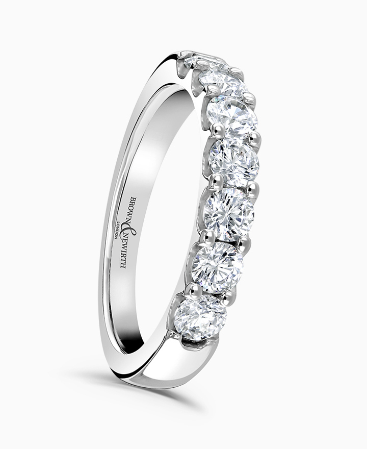 Handcrafted by Brown & Newirth; round brilliant cut diamonds adorn 40% of this classic court band. Total carat weight 1.00ct