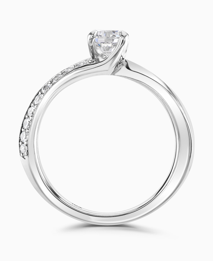 Handcrafted by Brown & Newirth; inspired by nature, diamonds sweep across towards a finely set round brilliant cut diamond, presented here on diamond set band. Centre 0.50ct, total 0.75ct. Part of the Entwined Collection.