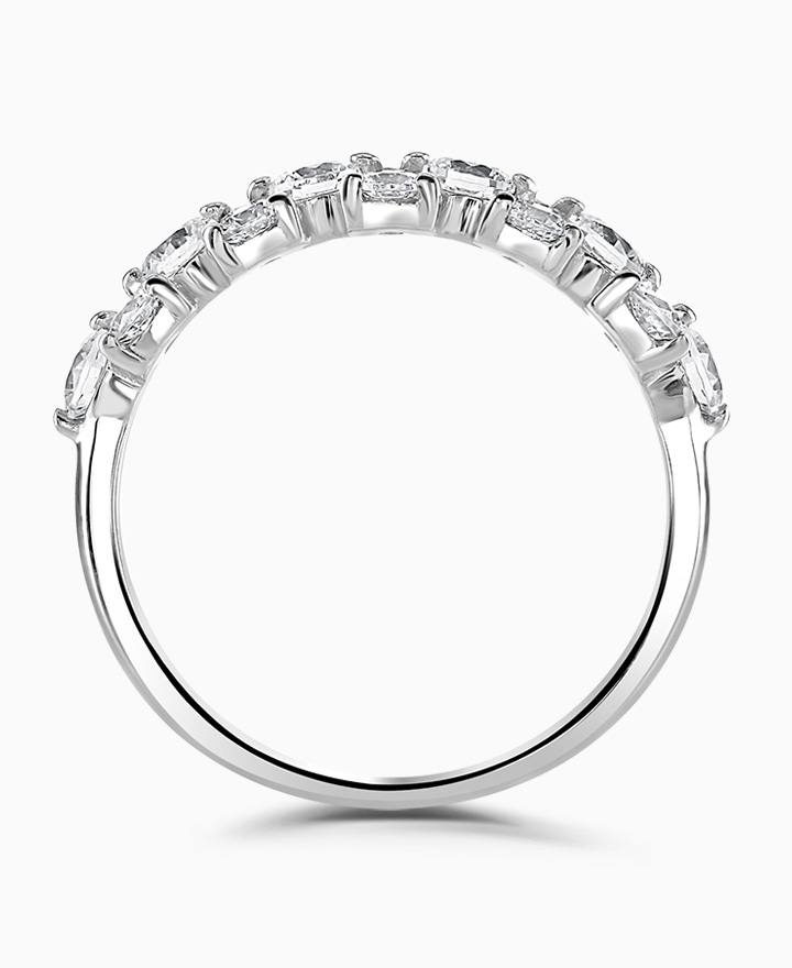 Handcrafted by Brown & Newirth; hopscotch set round brilliant cut diamonds adorn 40% of this classic court band. Total carat weight 1.10ct