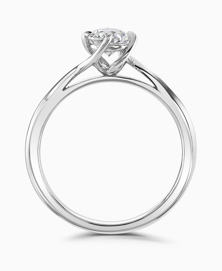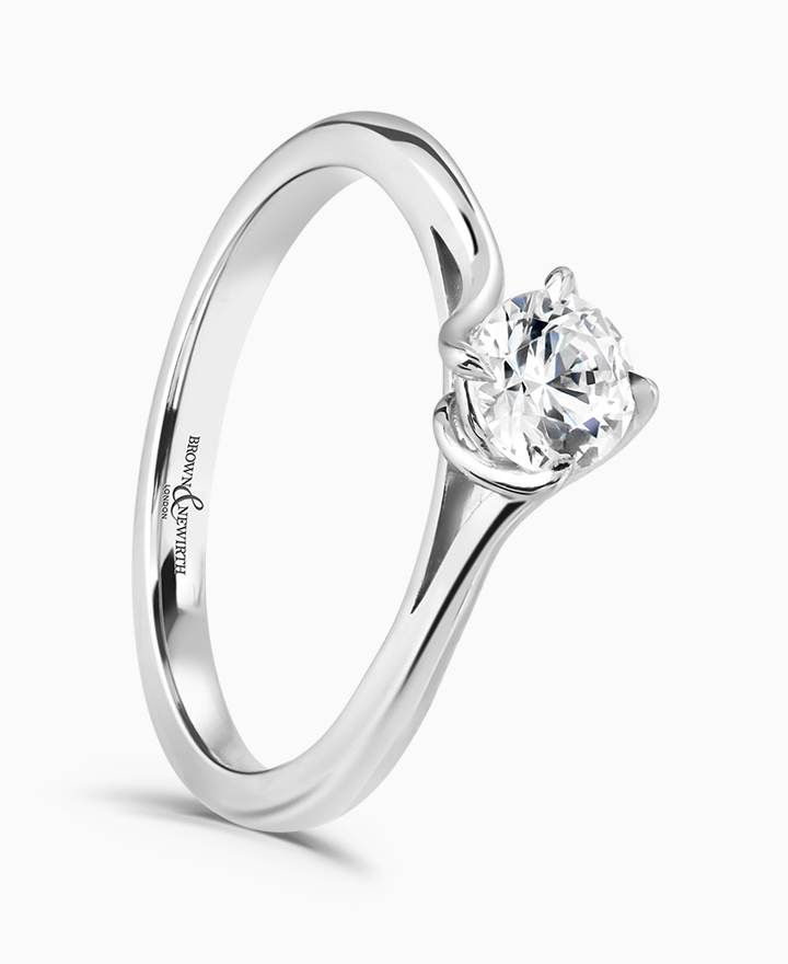 Handcrafted by Brown & Newirth; inspired by nature, organic lines twist up to embrace a round brilliant cut diamond, presented here on a classic court band. 0.50ct. Part of the Entwined Collection.