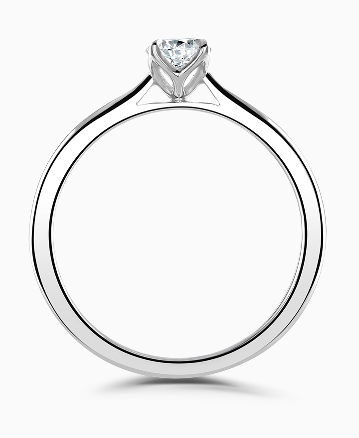 Handcrafted by Brown & Newirth; our signature 'bloom' floral detailing for a round brilliant cut diamond, presented here on a classic court band. 0.25ct. From our Bloom Collection. Part of our in stock range, order today for quick delivery.