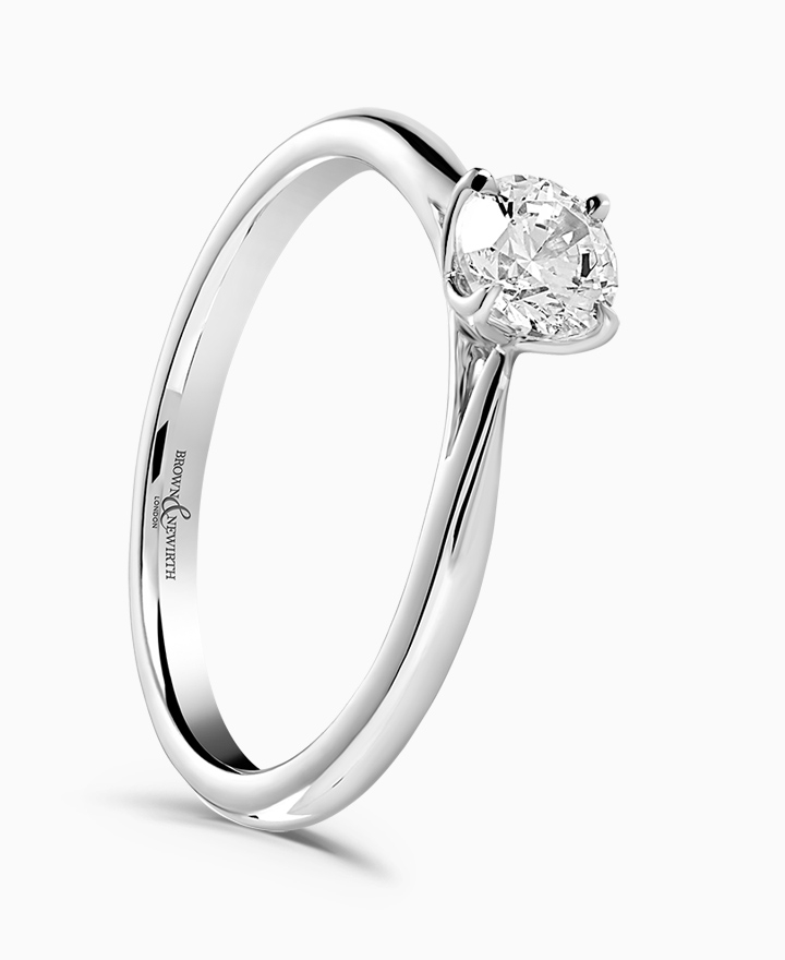 Handcrafted by Brown & Newirth; our signature 'bloom' floral detailing for a round brilliant cut G Vs diamond, presented here on a classic court band. 0.50ct. Part of the Bloom Collection.