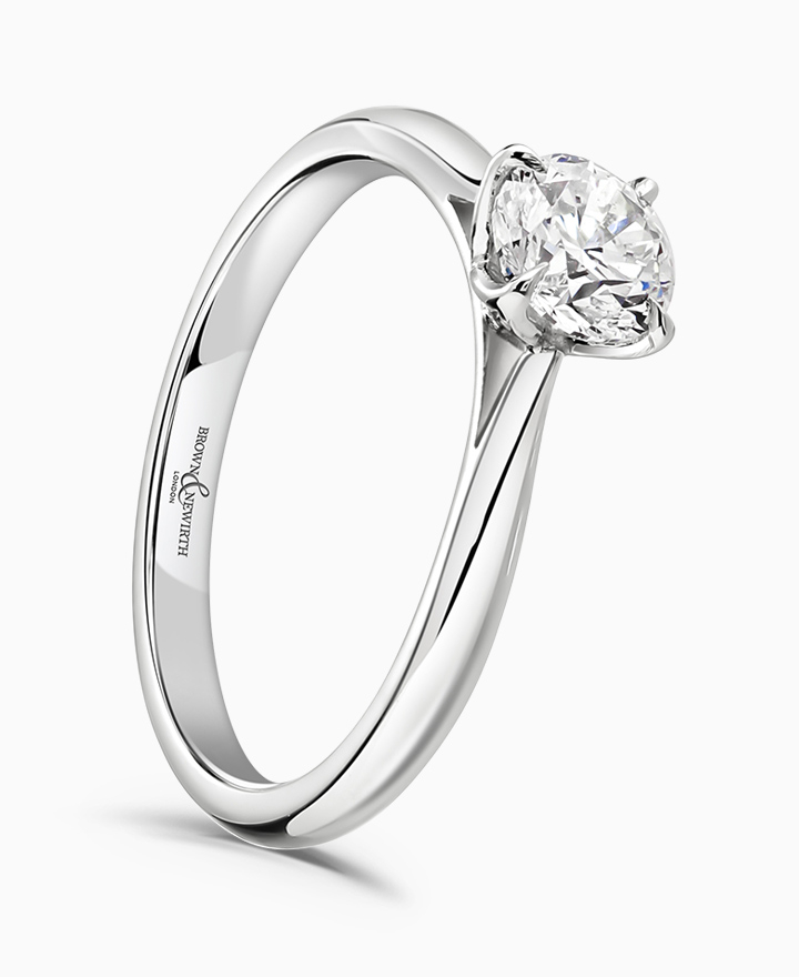 Handcrafted by Brown & Newirth; our signature 'bloom' floral detailing for a round brilliant cut F Si diamond, presented here on a classic court band. 1.00ct. Part of the Bloom Collection.