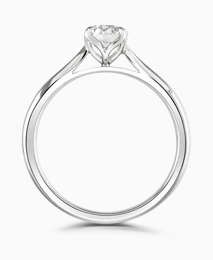 Handcrafted by Brown & Newirth; our signature 'bloom' floral detailing for a round brilliant cut G Vs diamond, presented here on a classic court band. 1.00ct. Part of the Bloom Collection.