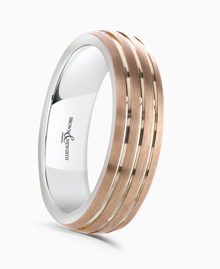 Handcrafted by Brown & Newirth; our flat top profile with v-cut line details revealing contrasting lining, presented in a heavy gauge.