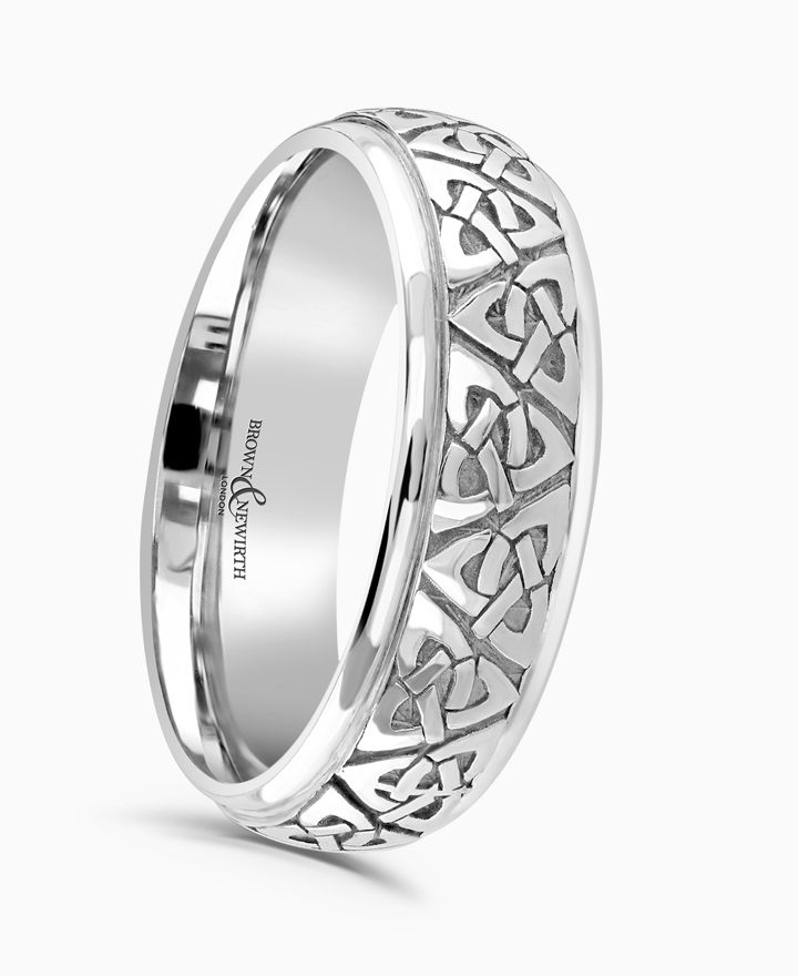 Handcrafted by Brown & Newirth; our classic court with 'Triqueta' design meaning 'honor the mother', presented in a light gauge.