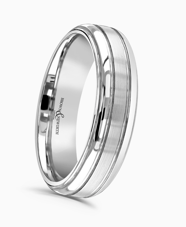 Handcrafted by Brown & Newirth; our flat top profile in matte finish with polished v-cuts and rolled edges, presented in a medium gauge.