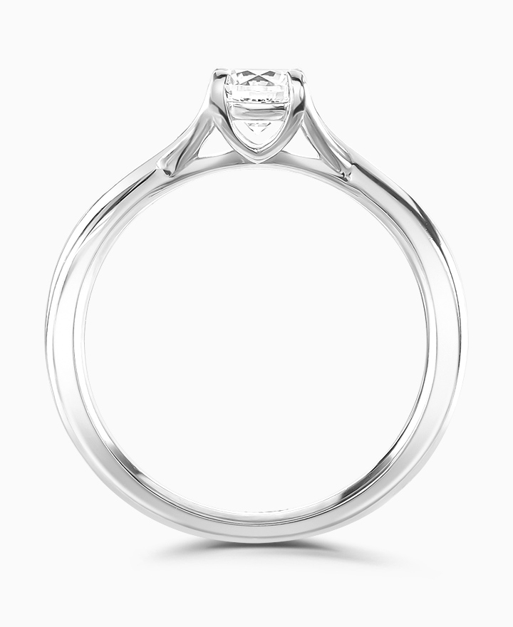 Handcrafted by Brown & Newirth; inspired by nature, organic lines twist up to embrace a round brilliant cut diamond, presented here on a classic court band. 0.50ct. Part of the Entwined Collection.