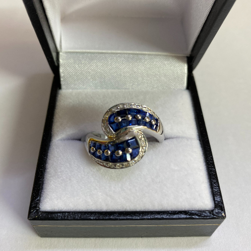 18ct White Gold Sapphire & Diamond Twist Ring