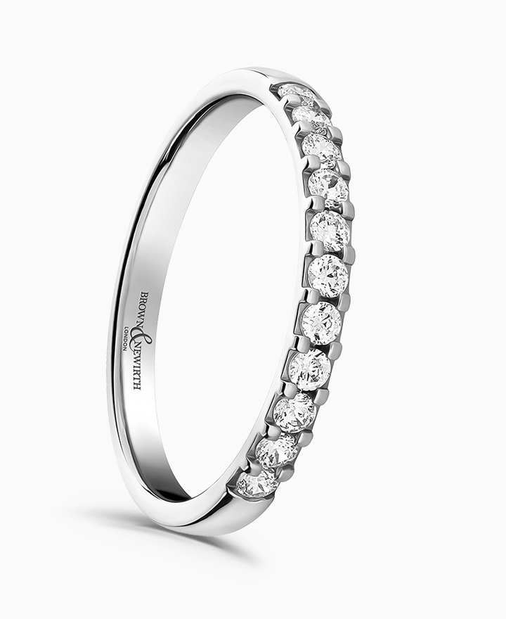 Handcrafted by Brown & Newirth; round brilliant cut diamonds adorn 40% of this classic court band. Total carat weight 0.25ct