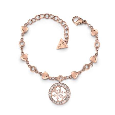 This GUESS chain and heart bead mixed Rose gold bracelet features an embellished 4-G charm.