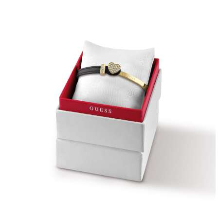 Gold plated bangle with half black leather crystal set heart bracelet.