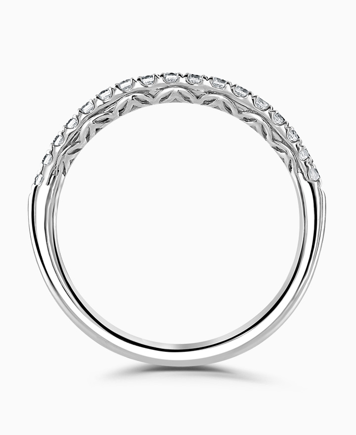 Handcrafted by Brown & Newirth; round brilliant diamonds, claw set with lace detailing adorn 50% of this classic design. Total carat weight 0.25ct. Part of the Lace Collection